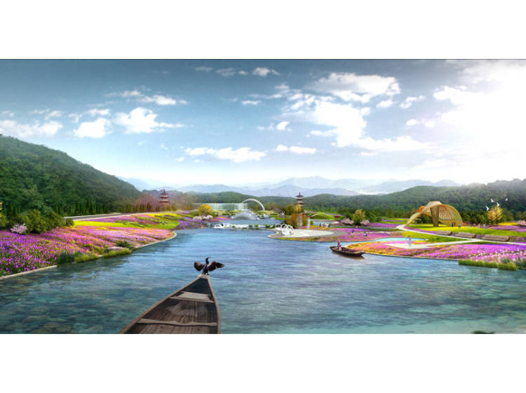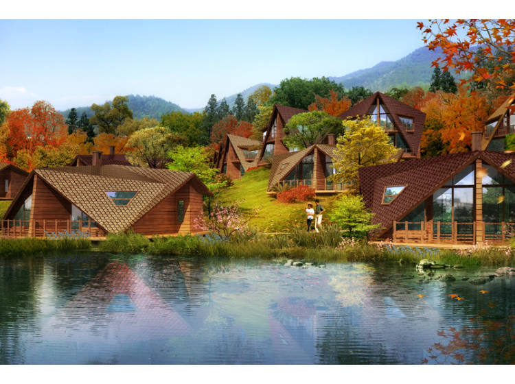 国际康养医院、知青博物馆、和谷书院、木屋酒店、树梢酒店、木屋博览园、枫情商业水街、演艺中心、和谷大学、院士工作站、森林公园、森林书吧、森林餐厅等