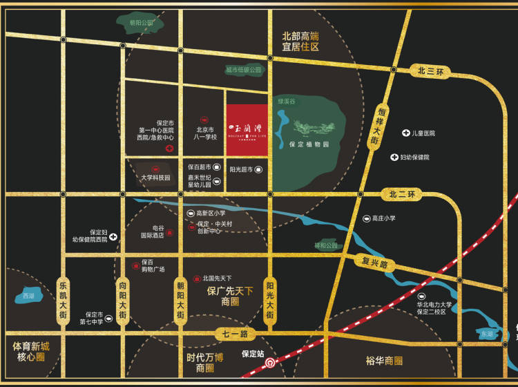 K2玉兰湾雄踞千年保府高开区阳光北大街与恒滨路宜居地脉,城市低碳公园、绿溪谷、植物园三园合围之地。