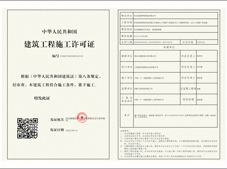 瑞创人工智能产业基地占地面积13717.88㎡;总建筑面积47885.78㎡,1#建筑面积24673.96㎡,1层展厅,2层开放办公,3-18层研发办公用房,2#建筑面积23211.82㎡,1层展厅,2层开放办公,3-17层研发办公用房;