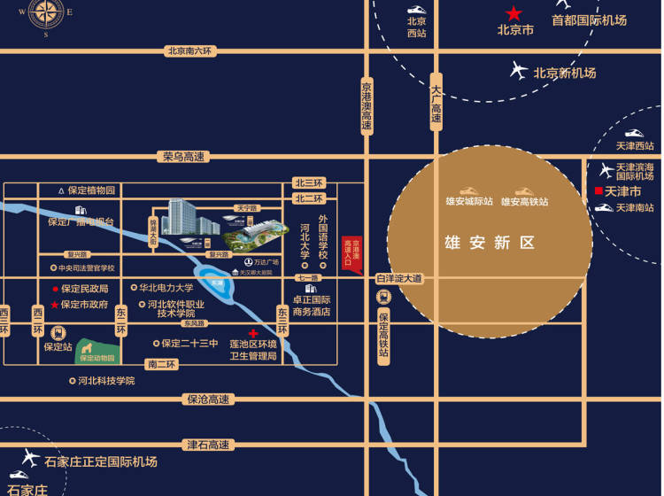 处于保定东二环三环间,紧邻高铁、高速口,链接雄安