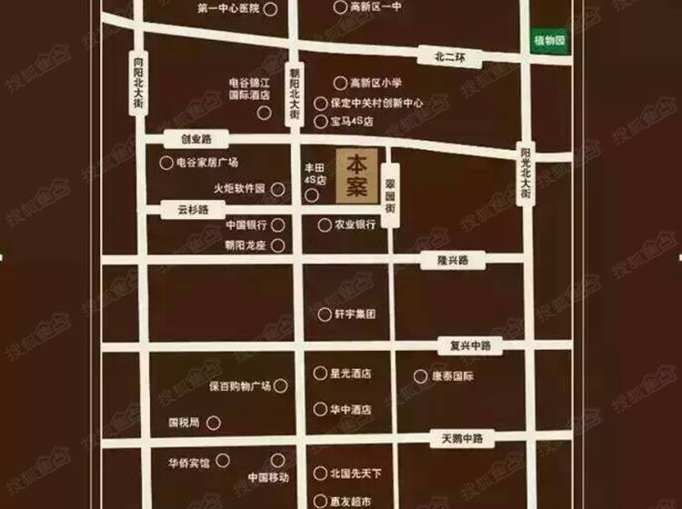 西北味道、浪味仙、综合商场保百、北国先天下、医院急救中心、市第一医院、银行中行、农行、建行、工行、河北银行、电谷酒店