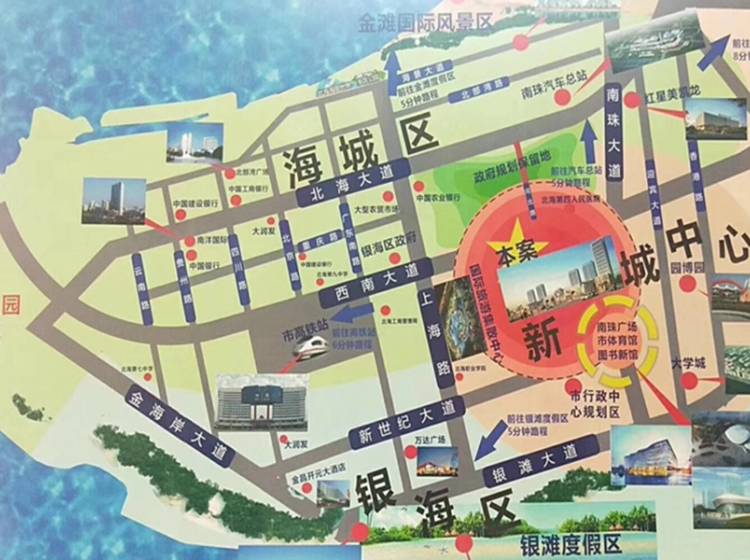 东盟国际商贸城由北海湾春投资开发公司投资开发的北海东盟国际商贸城项目,其中一期项目总用地约77332.87平米,建设面积314782.37 平米,项目整体业态包括大型商贸城、时尚步行街、精品公寓、高级酒店、家居建材广场等。后期计划建造仓储物流中心和电子商务平台,协助入驻商家全方位完善线上线下的交易网络。 本项目首期A地块规划为东盟国际商贸城,即大型第六代专业市场,以“东盟特色旅游商品集散中心”为定位,重金打造泛北部湾地区一站式旅游商品MALL,这里将集结1000多家全国知名品牌商家进驻,涵盖东盟特产、珍珠饰品、服饰箱包、日化用品、文具玩具、酒店用品等多种类别。