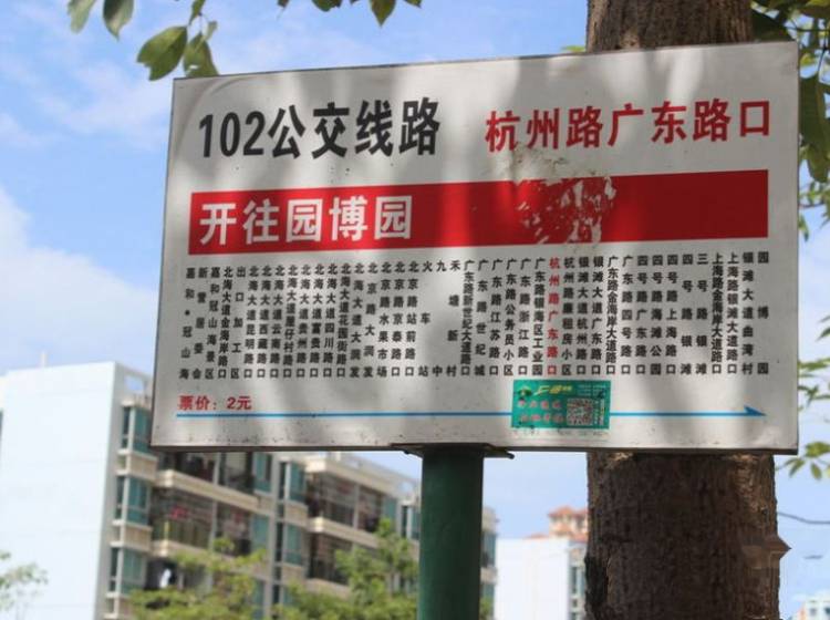 广东路万达广场(公交站):12路;17路;20路;22路;102路;106路;广东路杭州路口(公交站):106路;万达广场(公交站):102路;银滩大道路口(公交站):17路;22路;广东路银滩大道路口(公交站):12路;20路;102路;106路;廉租住房小区(公交站):20路;杭州路廉租房小区(公交站):102路;银滩大道杭州路口(公交站):102路;海韵佳园(公交站):20路;广东路浙江路口(公交站):12路;17路;20路;22路;102路;106路;