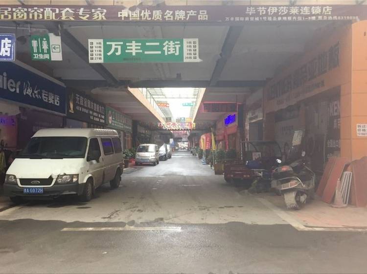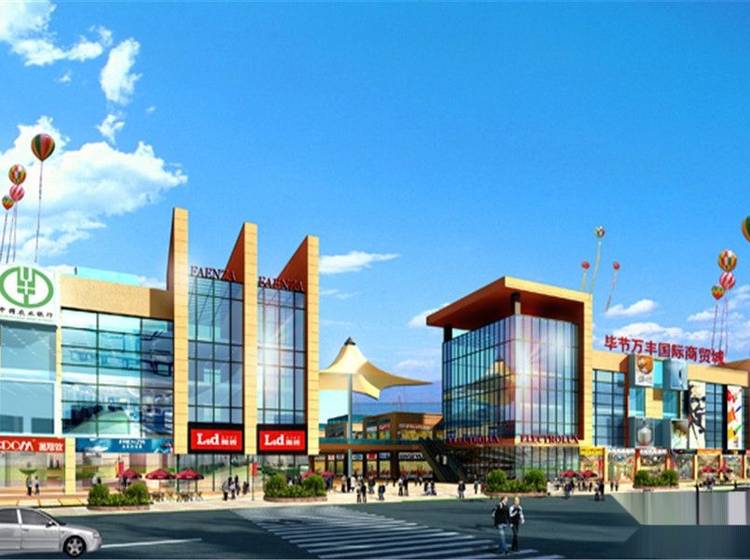 万丰国际商贸城,高铁商圈排名前列站,全国建材五星级市场,省市区重点招商引资项目,政府“划行规市”指定入驻项目,碧阳三道黄金动脉,50万方超大规模,五星仓储配套。 项目坐落于贵毕大道,投资总额18亿元人民币,总占地面积约413亩,总建筑面积近50万平方米,计划分三期投入建设,其中一期6万平米1500户商户己于2013年10月25日开业,二期10万平米也已经正式投入运营,三期打造成为毕节大的五金型材电器城。