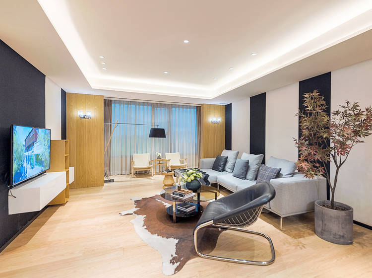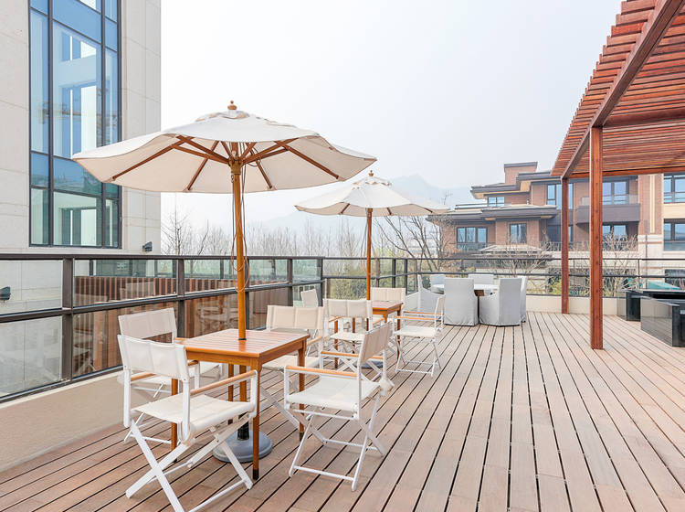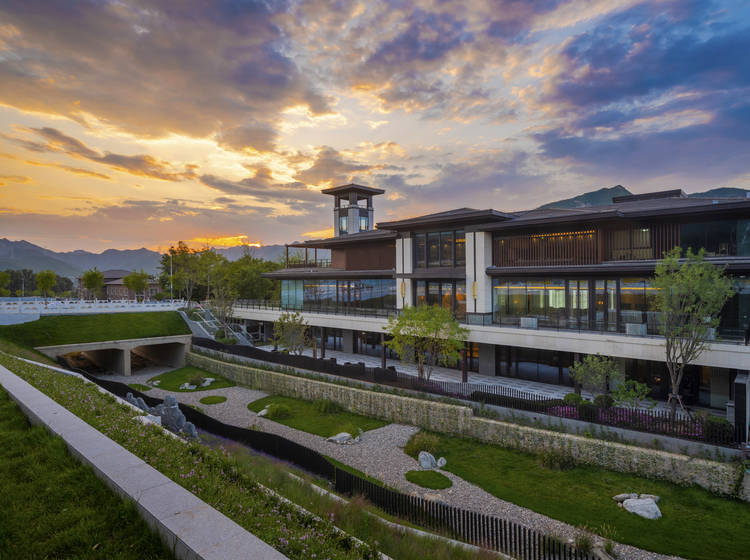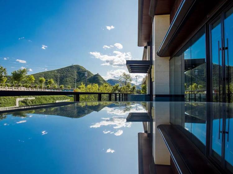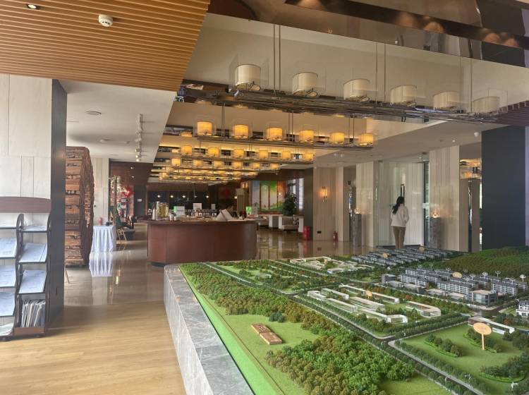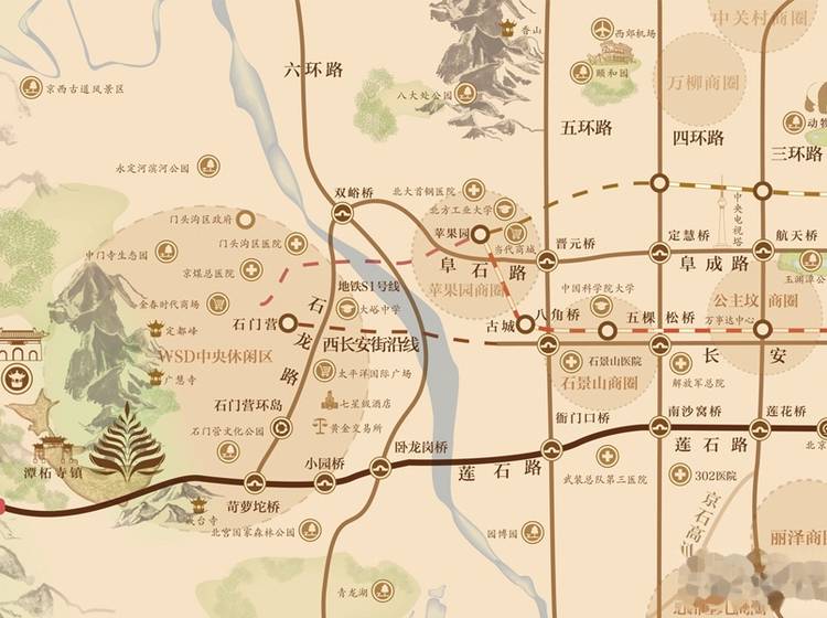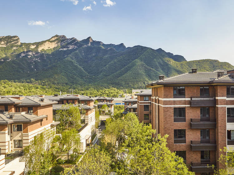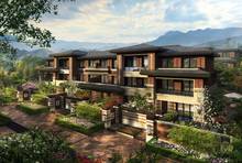 京投发展·檀香府位于门头沟潭柘寺镇,整体地势呈现西北高、东南低的一个态势。规划中保留了西山原始的山体地势及山地肌理环境,再进行整体楼栋排布,在售产品有125平和170平洋房,208-245平叠拼,320平联排。