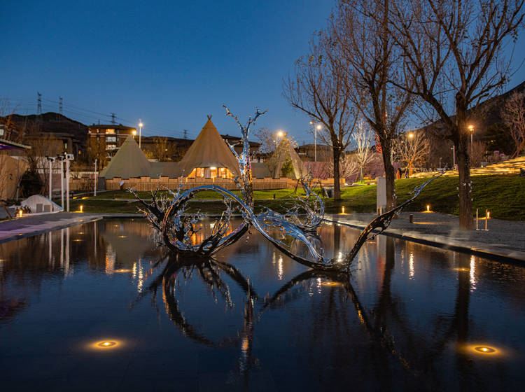 从玉泉路出发,沿莲石路向西行驶3.5公里,进入京原路继续行驶7.4公里,进入108国道,向西行驶6.8公里,进入潭柘寺隧道,出口北侧即到。