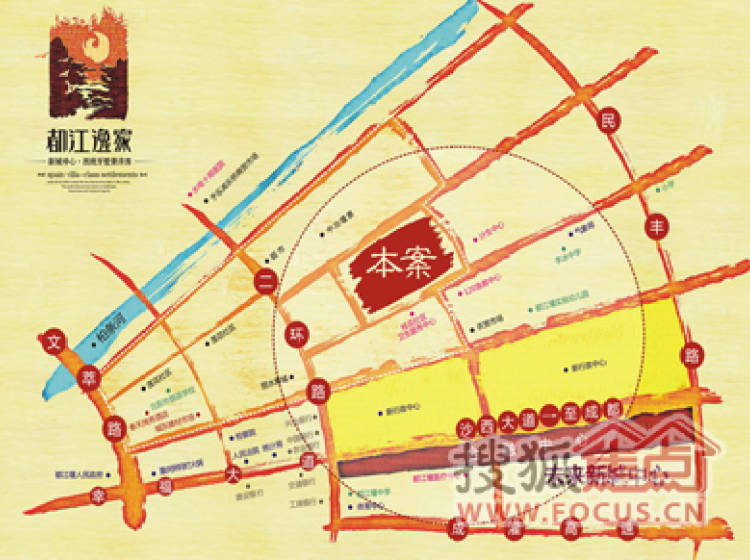 中小学:李冰中学、小学、幼儿园、农贸市场、都江堰新行政、办公、金融中心