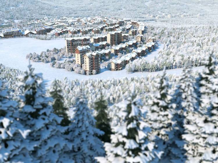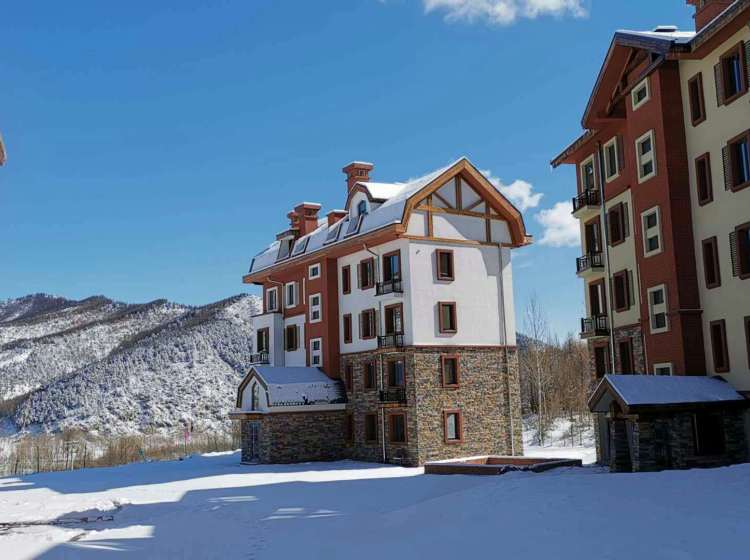 参考瑞士滑雪胜地-采尔马特小镇为蓝本,整体为北美建筑风格,4层坡顶精装洋房,容积率仅为1.01,集运动、休闲、度假、康养为一体的特色小镇,包含住宅、商街、酒店、滑雪大厅、温泉。
