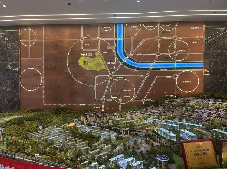 俊峰·山万里位于中国.磁器口中央生活区、歌乐山下,嘉陵江畔、磁器口西。目前是重庆内环核心区规模较大、容积率较低、别墅纯度较高的资源型城市纯别墅项目。 项目总占地173亩,建筑体量26万方,容积率仅为1.08 。 俊峰·山万里在建筑设计上采用“赖特”建筑风格,诠释了赖特风格崇尚自然、生态、宁静的生活梦想,整个建筑外立面采用了进口的干挂石材和高端真石漆组合,外观将简约典雅的浅灰色和咖啡色有机结合,让建筑的肌肤更加呈现出品质感。 在配套上,拥有: