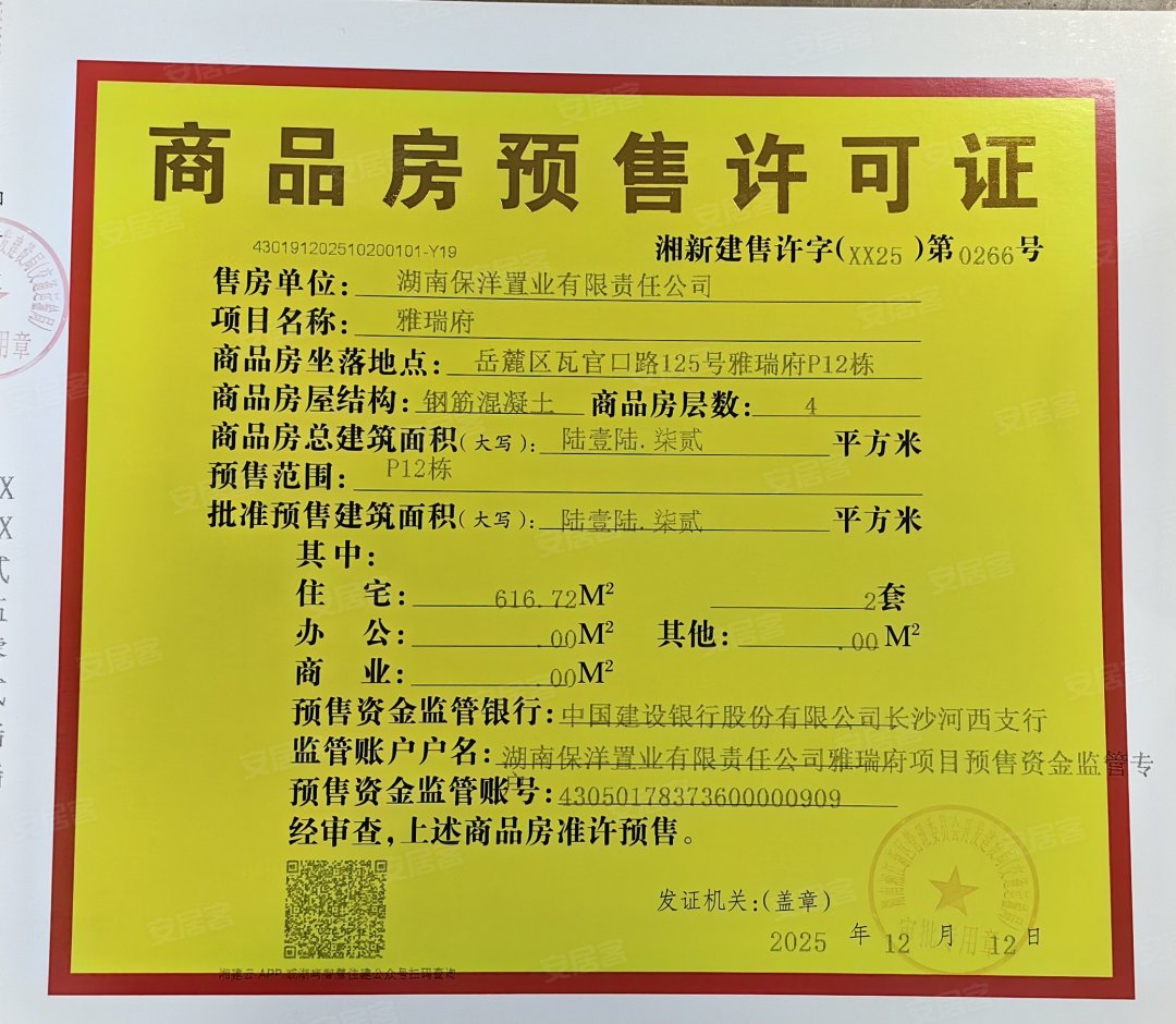 - 湘新建售许字(XX25)第0266号 详情发证时间 2025-12-12绑定楼栋P12#证件照片