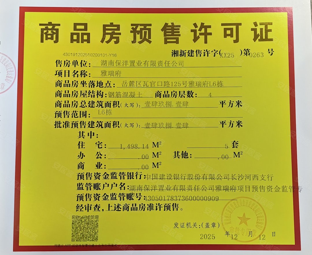 - 湘新建售许字(XX25)第0263号 详情发证时间 2025-12-12绑定楼栋L6#证件照片