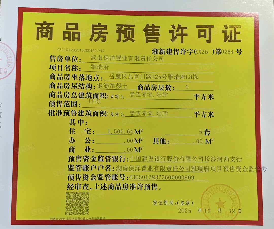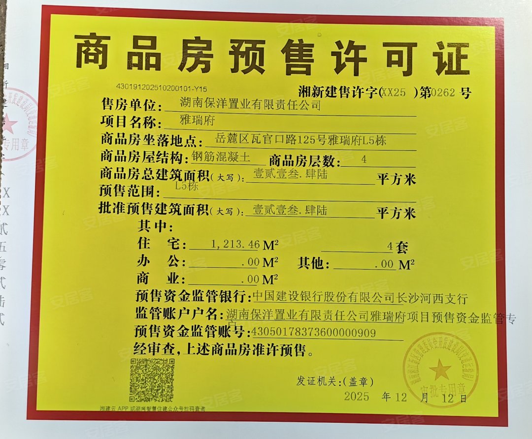 - 湘新建售许字(XX25)第0262号 详情发证时间 2025-12-12绑定楼栋L5#证件照片