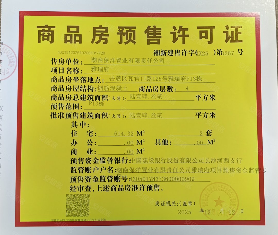 - 湘新建售许字(XX25)第0267号 详情发证时间 2025-12-12绑定楼栋P13#证件照片