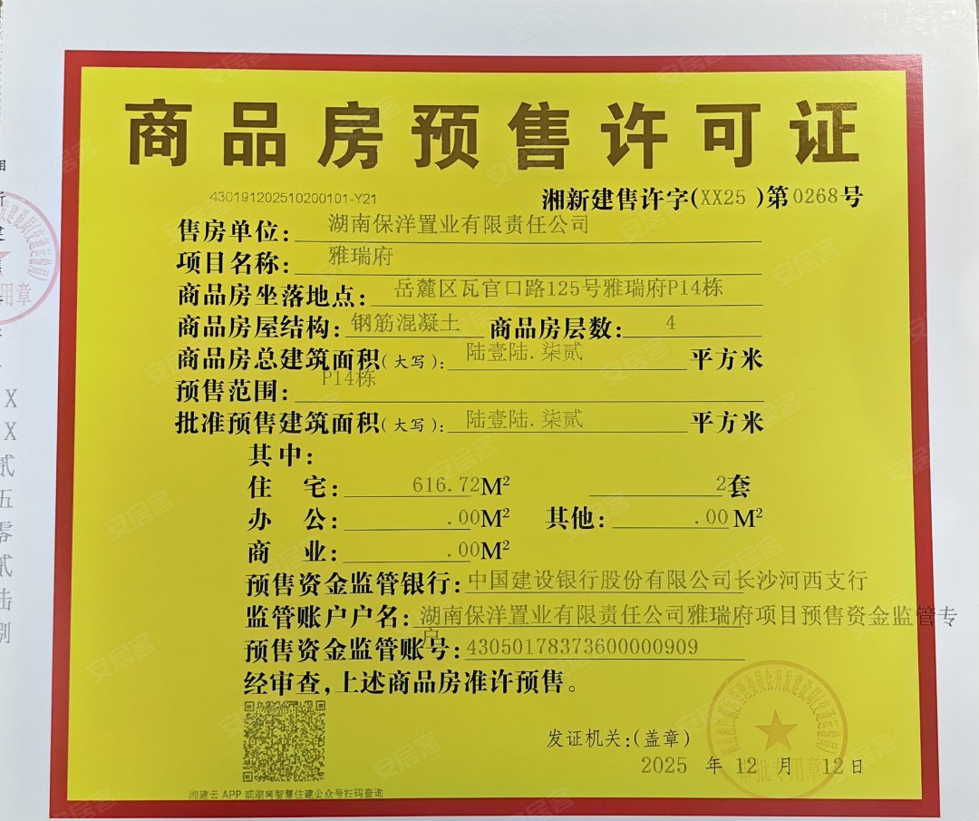 - 湘新建售许字(XX25)第0268号 详情发证时间 2025-12-12绑定楼栋P14#证件照片
