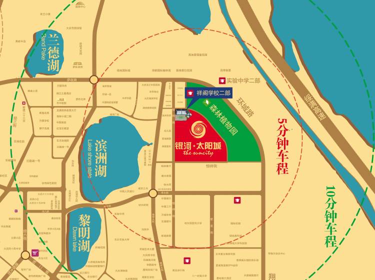 生活配套:北邻全省最大的单体服务中心职工服务中心设等8个场馆,可承办国家级赛事,对全市职工免费开放;东邻3000亩省内一流综合性森林植物园;西侧300万平米滨洲湖畔,享有得天独厚的景观资源;