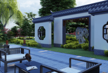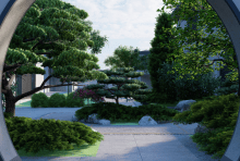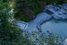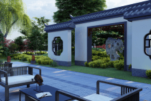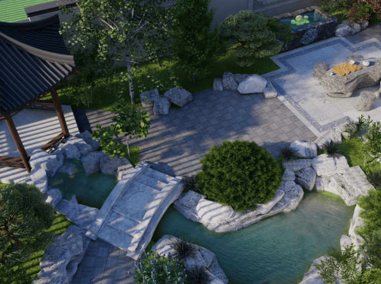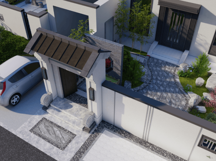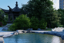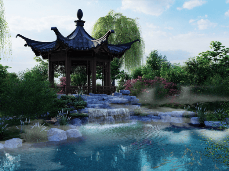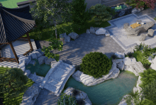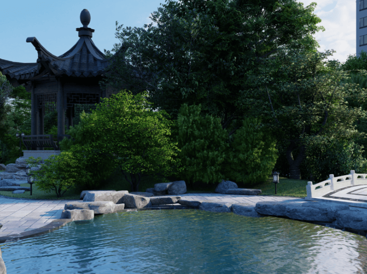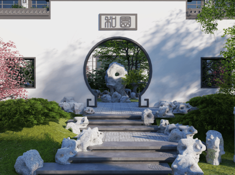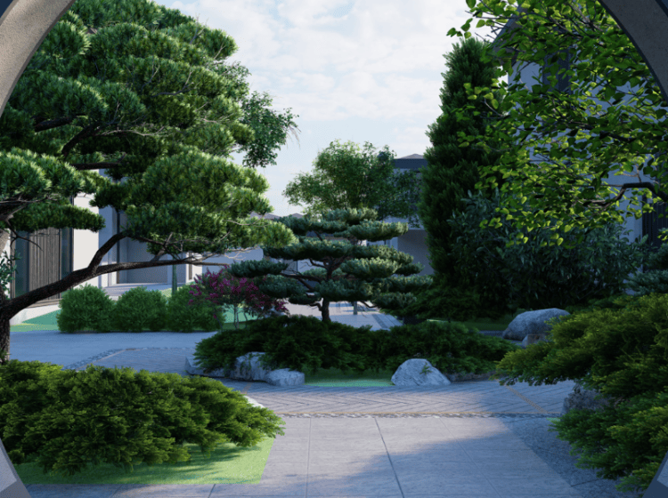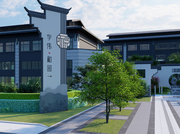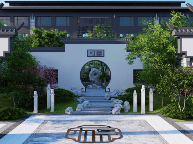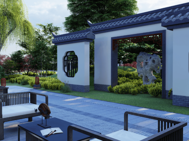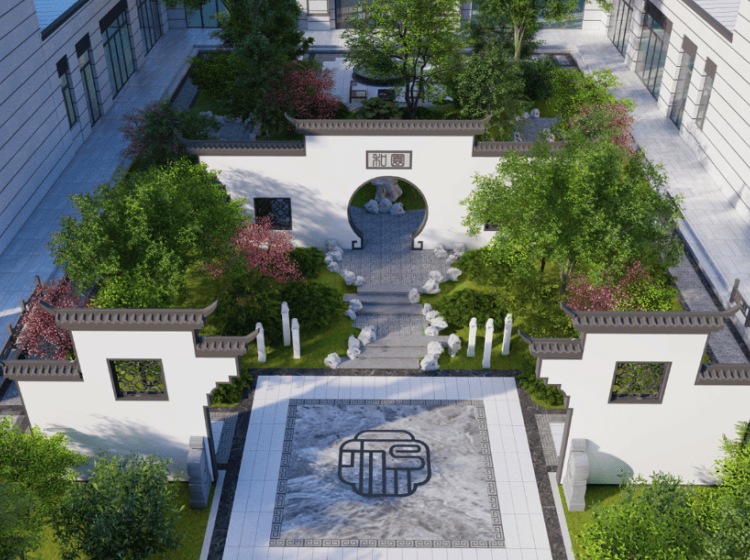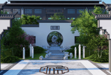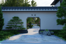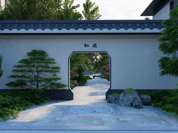 和园别墅区域,园林采用“五和”的设计理念,设计了一条五和巷道体现中式“和”文化,讲述了五个和文化的理念,表现的手法上我们设置了五处景观,借助景墙小品等构筑物把这五个主题分段置放在整个巷道中,通过和处,和立,和生,和达,和爱来表达中华文化和合人文精神的精髓。