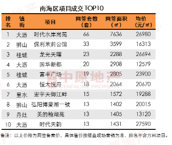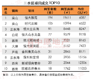 主城区成交量回落 三水恒大雅苑成交194套夺桂冠