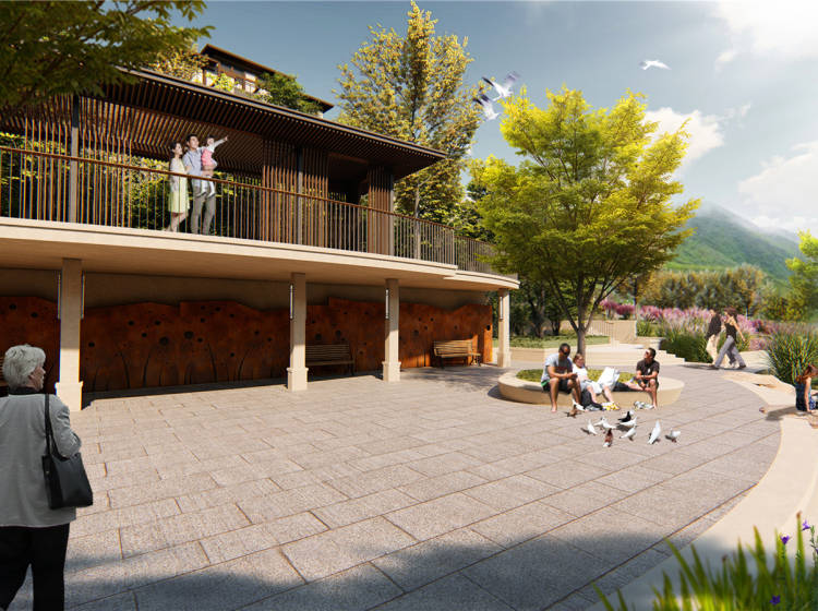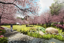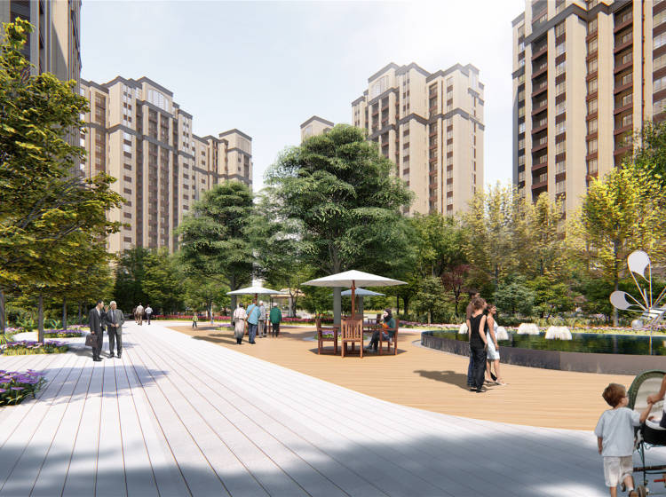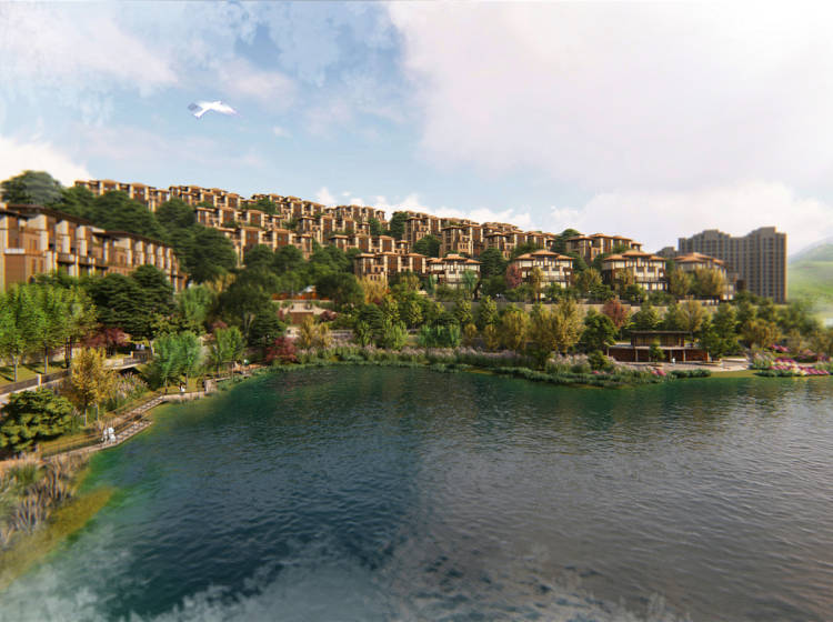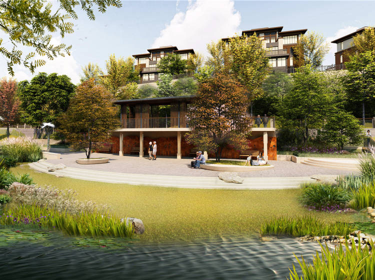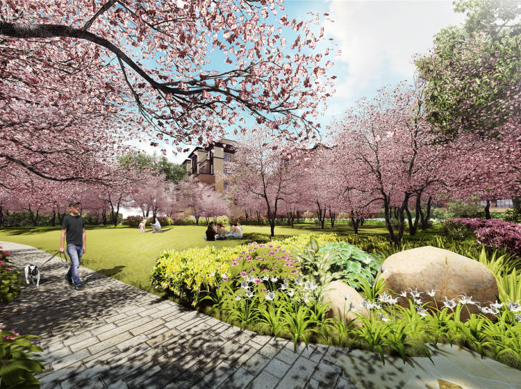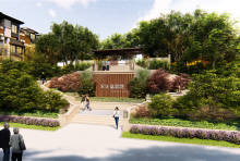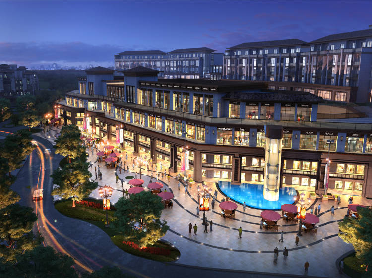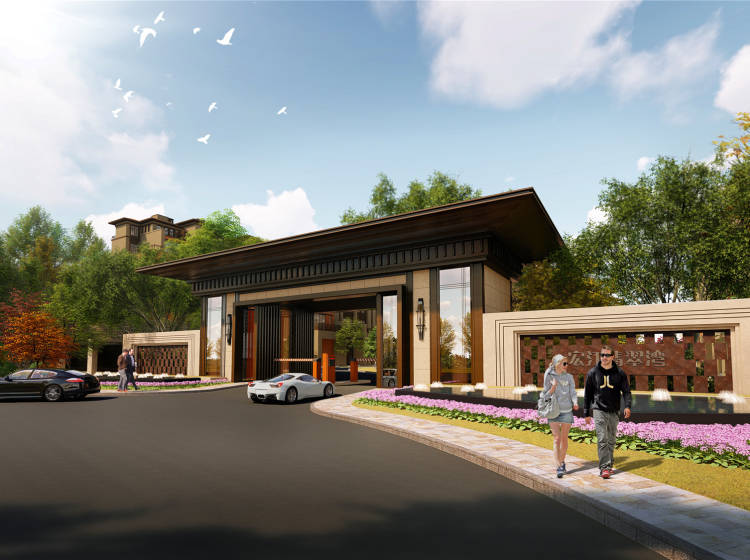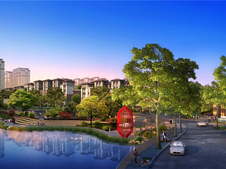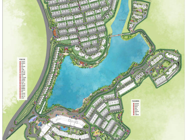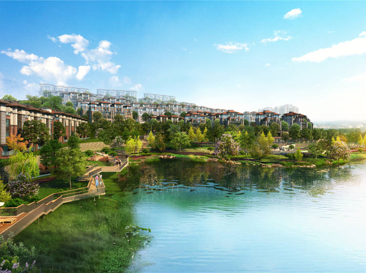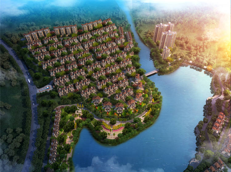 新亚洲风格、东南亚风情园林景观、三大主题公园组团,分别是山体公园、环湖公园、樱花景观公园