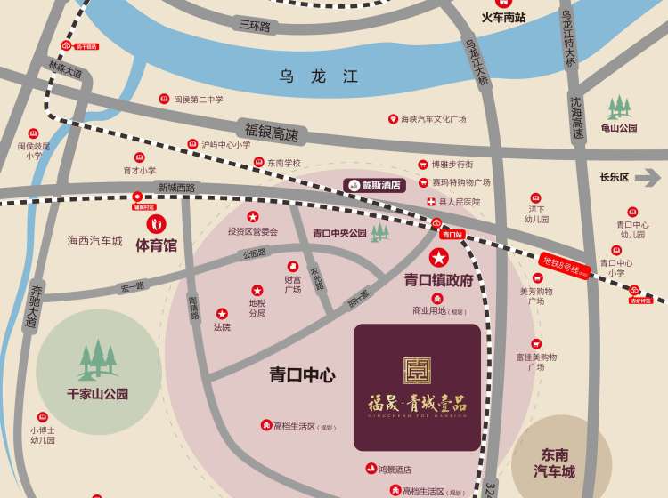 福晟青城壹品项目位于福州市闽侯县青口祥宏南路818号(鸿景快捷酒店旁),紧邻中央公园,新城最中心地段。 项目总占地约50亩,规划8幢23-26层的高层住宅,户型为60至110平的二至四房户型。小区内设1幢建筑面积为3600平方米的幼儿园。周边生活配套、医疗配套、教育配套、政府机关单位、休闲配套等步行10分钟左右均能到达。