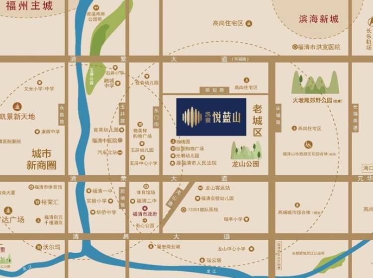 项目向西快速通达福政大道、福人大道、福百大道等多条主干道,可谓不离老城不弃新区;向东连接福清环城路,贯通沈海高速公路、福厦公路以及规划中的京台高速公路,交通便利快速接驳融城的各个角落。