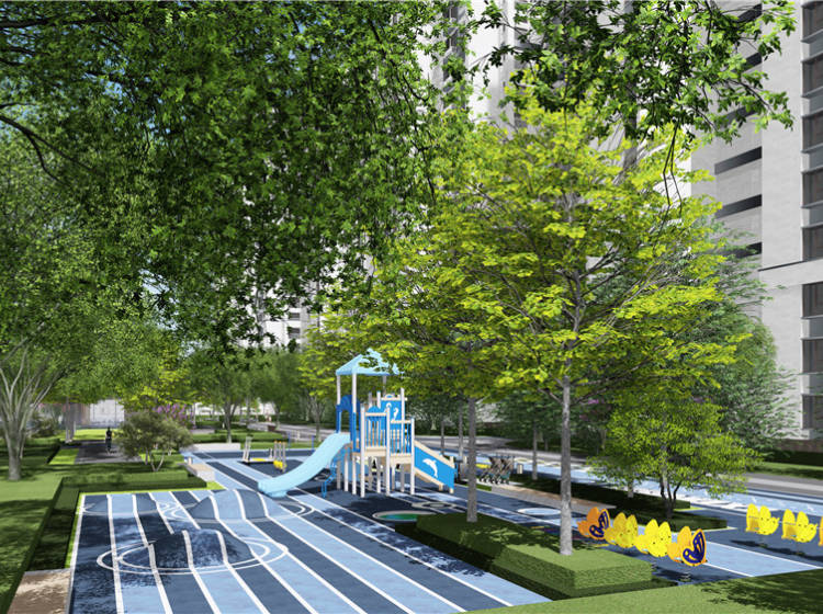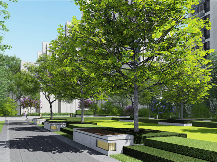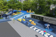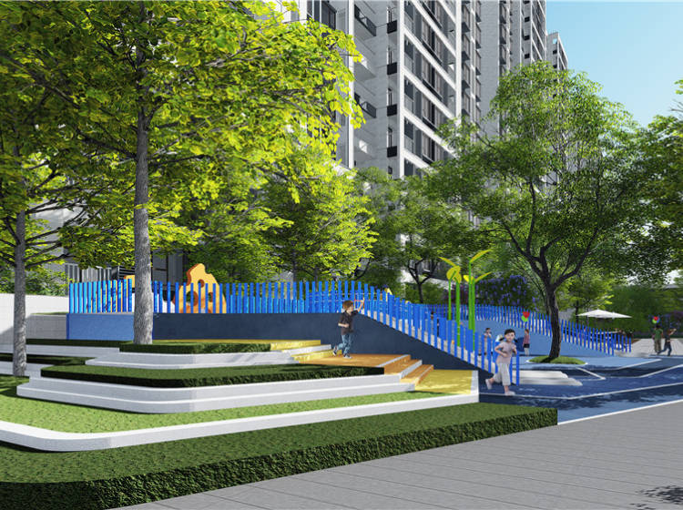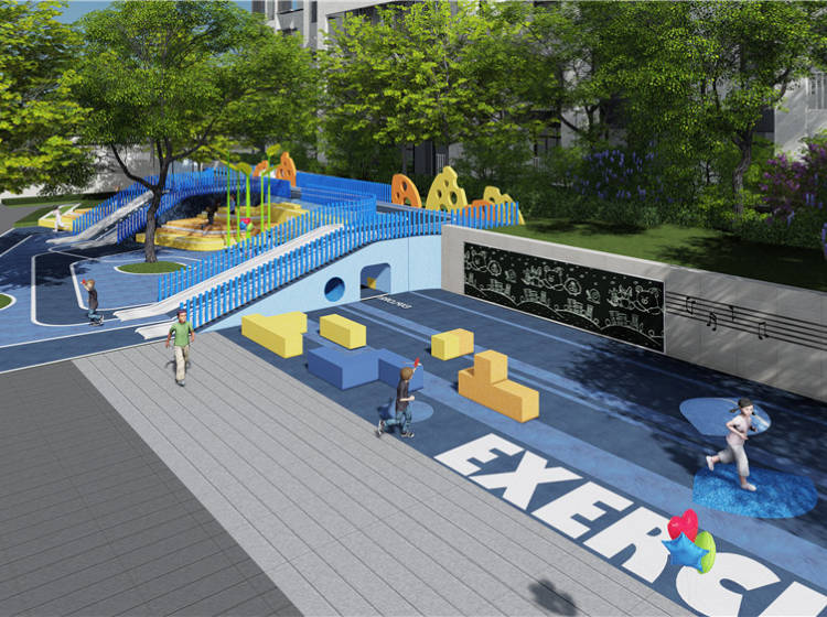 亲子乐园、室外器械区、邻里会客厅、宅间花园等