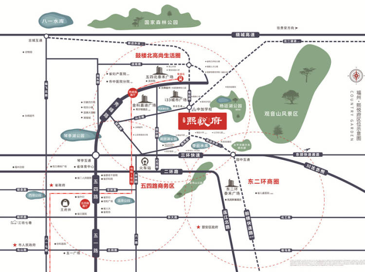 福州•熙悦府是由5大房企巨擘碧桂园、保利、华润、首融、世茂强强联手、匠心打造的五四北超百亩史诗大盘。项目毗邻五四北泰禾广场、i33城市广场、金科嘉迪广场、东二环泰禾广场4大商圈,将汇聚交通、商业、教育、医疗、休闲等资源,形成品质生活圈。项目是由世界500强房企打造,华润设计,央企精品,精筑45-135㎡一房至四房装修华宅,重塑福州品质人居。