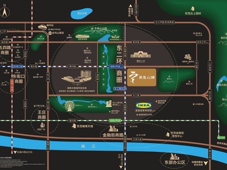 化工路、橫屿路、前横闽江大桥、三环互通等打造便捷路网,快速通行全城。往左快速通达五四路、东街口CBD,往右链接琅岐、连江,以及机场快速,往下直达金融街,无缝接轨东部办公区,门口即是地铁口,居家出行便捷无忧。