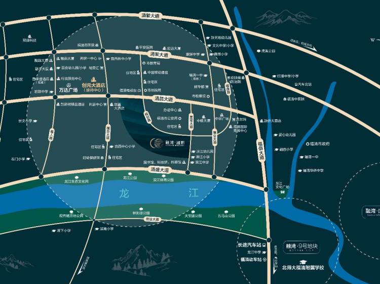 6、休闲配套:龙江公园、龙江生态文化园、观音埔湿地公园、林则徐公园、福清市民生态休闲公园、滨江体育公园;