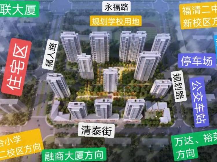 毗邻福人路,清荣大道北侧,隶属于音西街道,项目规划12栋高层及社区底商两大产品,是全福清配套最齐全、交通最便捷、居住最舒适的区域,同时也是福清近几年西区难得的近百亩大盘。