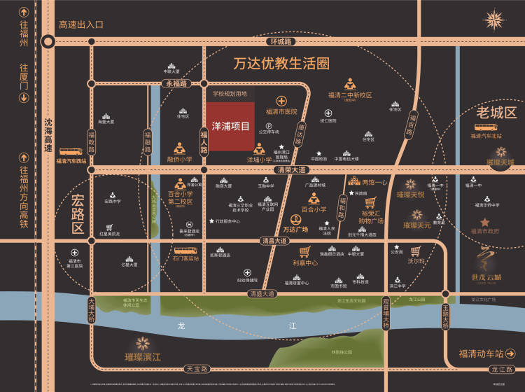 【教育配套】:现有的洋浦小学、融侨小学、百合小学第二校区(规划)、宏路中学、三华职业技术学校、玉融中学(在建)以及项目东北面规划的福清二中分校,书香浓郁。