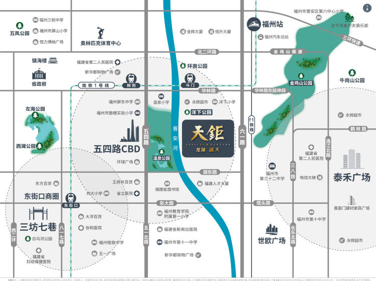 龙湖盛天·天钜|新壹街区域汇聚东街口、五四路、东二环三大商圈,政府、企事业机构密集,多所学校密布,融合市中心政、商、金融、文化资源。项目周边约1.5公里都会生活圈内聚集30万左右高端人群,自身约2700户高品质社区业主,辐射周边区域近百万人潮。
