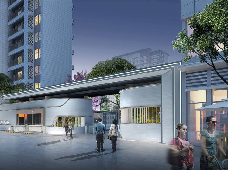 【建筑风格】采用现代的建筑风格,“世家系”的新唐风设计手法;在屋檐正下方装饰“唐”字符元素。