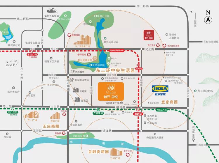 首开香悦是双奥国匠——首开集团,入榕11载厚积实力新作,项目位于晋安区鼓山镇福光路318号,择址央芯保留区,东二环腹地(五里亭地铁口),接二连三,十字轴心坐标,与金融街CBD遥呼相应,2/4号线地铁枢纽,拥万达、东泰禾、世欧、宜家4大商圈,同时周边有市科技馆新馆、市少儿图书馆、群艺馆、三创园等区域配套升级,汇聚了全福州最稀缺的资源。