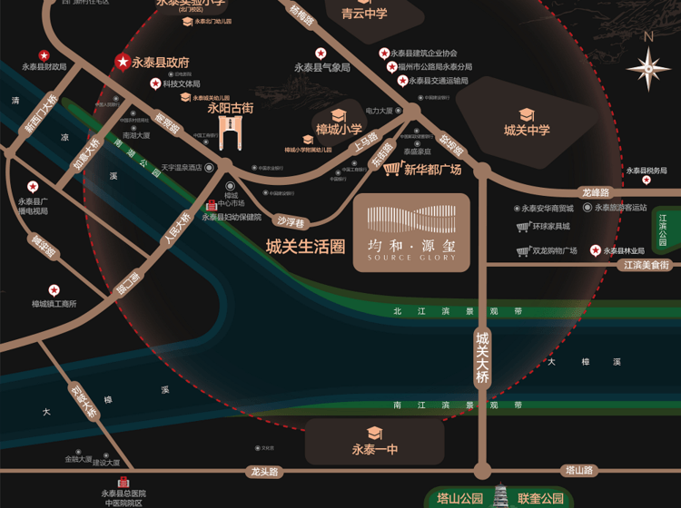 项目位于永泰县樟城镇沙浮路1号,处于永泰城关核心地段,周边配套成熟,一线临江,是老城区少有地段。
