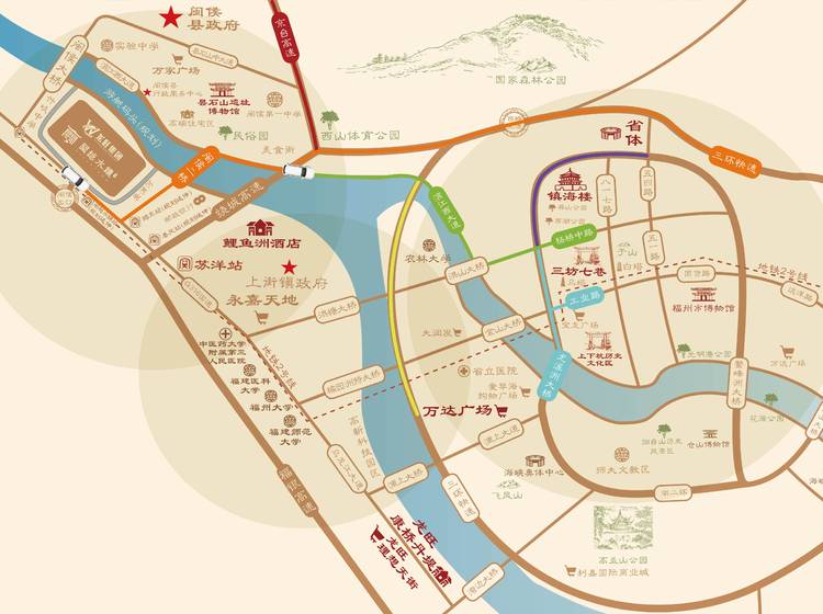 项目由国内首屈一指的新文旅地产开发者龙旺集团打造,择址于福州滨江新城竹岐新区,“荆甘竹”一体化战略要地,推动福州迈进高级中心城市的重要节点。项目据守闽江源头,千年闽越文化的起兴之地,对望鲤鱼洲国宾馆,昙石山文化遗址,于投资百亿的景区之上规划万亩醇熟生活大城,以福州2200 年闽派建筑文化为蓝本,融入苏式留园的营造取法,勾勒梦里水乡的理想家园。项目规划中式院落、滨江奢宅、景区公寓资产,恢弘手笔以闽越水镇景区为核心配套,涵盖吃住行游购娱、文休展养康研,打造集生态人居、综合服务、商业休闲、水乡旅游、健康颐养、社群体验等为一体的沉浸式休闲度假生活大城。