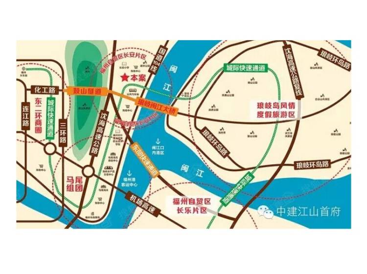 东部快速通道(在建)直达福州市中心;琅岐闽江大桥直达琅岐国际旅游度假区;104国道直通马尾中心城区;