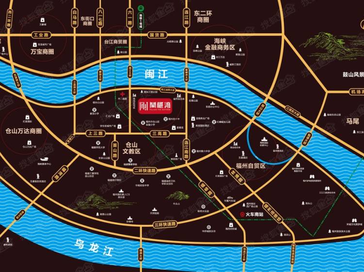 闽樾湾,世界闽商实业有限公司集万众瞩目,斥10亿巨资倾力打造的江景奢宅高级力作。项目矗立福州南江滨与二环线交汇坐标—港头岛,北临闽江,南接港头河,坐拥一线双江盛景。自2010年政府严格控制滨江地块再建住宅后,闽樾湾占据市区闽江最后一隅豪宅用地,以不可复制的区域升值潜力和优质稀缺价值,成就闽江全新地标奢宅。