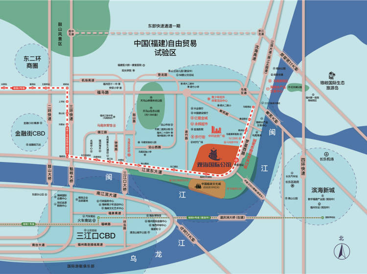 周边交通:交通四通八达,畅行无阻。马尾作为福州东南门户,扼守沈海、机场、福泉高速,城际交通便捷。沿罗星路、君竹路,经福马路驱车即可抵达4A级景区——鼓山。经君竹环岛上沈海、福泉高速,向北可抵达连江、宁德、温州、上海等城市,南行可到长乐、泉州、厦门等地,西面经港口路连接江滨东大道,直达自贸区,还可抵达台江万达金融街商圈,也可上三环快速路,通达全城。