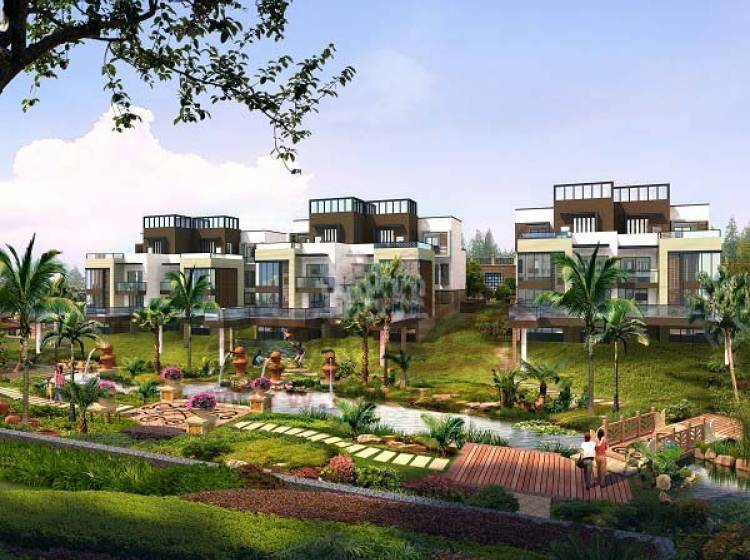 “归壹墅”沿坡地而建,御水藏风,打造高品质人杰之居。在景观上,通过东南亚的风情景观打造奢华、浪漫、异域风情。以一条中心水系为纽带,贯穿整个小区,利用小区内的地形高差,形成优美的自然叠瀑景观。其间配上泰式风格的亭子、小桥、景墙、雕塑、廊架、休闲步道、棕榈等热带植物营造出东南亚风情园林景观。