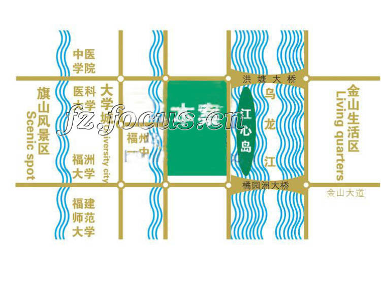东:乌龙江;南:融汇山水别墅;西:福州大学城;北:博仕后家园住宅;