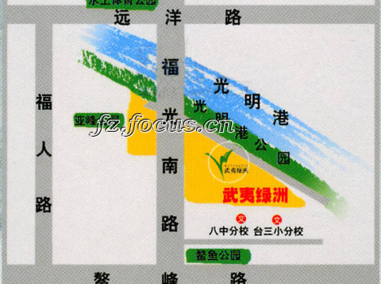 武夷绿洲位于东区福光南路光明港旁,占据东南风入口处的300亩优质领地,南拥23亩区内休闲运动广场、北傍700米光明港水岸线,鳄鱼公园等四大公园环侍。社区园林面积近6万平方米,拥有五大中心组团花园,景观的设计以“自然健康”为主题。