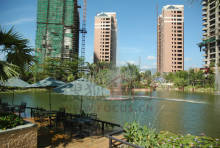 整个社区呈围合式布局,各地块分别围绕中庚园而建,形成景观资源共享较大化,社区景观与中庚园的景观既相对独立又紧密相联,各地块的主入口均对着中庚园,营造一种家在公园中的感觉。公园设计以休闲运动为主题,园内设2个网球场,2个羽毛球场,儿童活动区等,蜿蜒的水系贯穿全园,核心部分为5000平方米的绿化草坪,将来为业主休闲娱乐提供了一个良好的场所。考虑到业主将来购物的便利,我们1#.2#楼裙楼部分规划了18000平方的共三层的国际级大型卖场,满足业主一站式购物的便利需求。在商场东侧特设一个3500平方的三层豪华商务会所配套,配备了室内恒温游泳池、咖啡厅、健身房、SPA馆等高端商务设施。