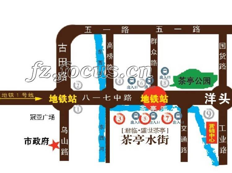 【君临盛世茶亭】项目位于福州市中轴线八一七路中段,以“一轴三核心”的规划方案重力出击。一轴就是中轴线景观街与地下商业街;三核心分别指茶亭河水街、群众路现代商业中心、洋头口商业步行街。其总长近1000米,总建筑面积达32万㎡,其中一层地上商业独立式沿街店面达2.6万㎡,2-6层达7.8万㎡,集中式商业3万㎡,地下商业8.8万㎡,公寓及商务办公约10万㎡。福州的百年老街——茶亭街作为福州商业的核心区,连接东街商圈和台江商圈的财富中枢、龙脉核心,是目前福州市较大规模的商业改造工程。项目总项目占地123.2亩,以传承茶亭街百年商业文化﹑重现民俗商业街繁荣景象为特色,结合了旅游、购物、娱乐、景观、休闲于一体,将茶亭街建设成为一个重要的商业中心、民俗中心、文化中心,使茶亭街成为福州人引以为豪的地标性建筑。