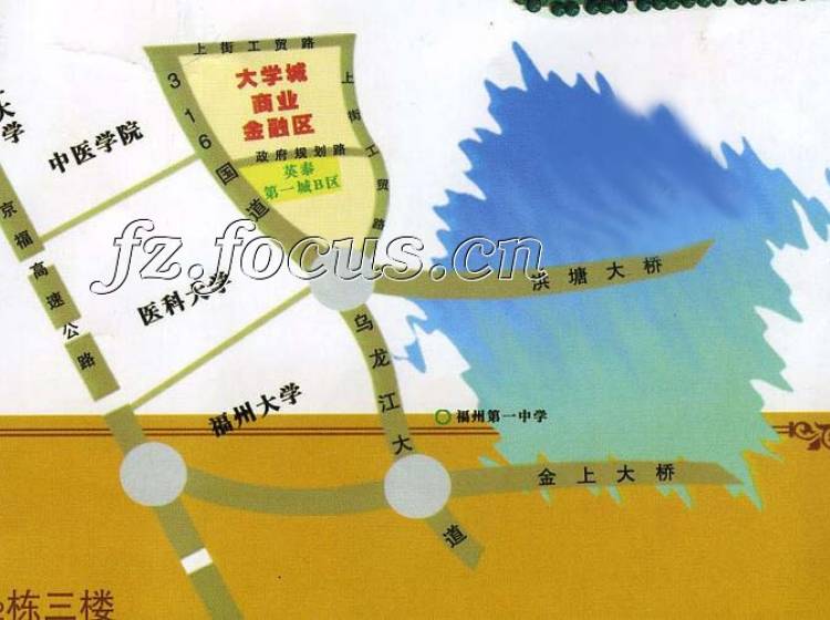 福州大学、闽江学院、中医学院、闽江大学,另外还有近20所大学、研究院环绕周边,项目旁还有一条规划的学生街。