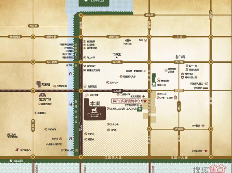 项目位于位于福州市中心、白马南路东侧,北临水口大厦和工业路,西临白马河公园,毗邻宝龙万象商圈,紧邻北江滨CBD,坐拥城市立体交通网络。项目占地31031㎡(合46.55亩),总建筑面积约13万平方米,由1栋6层住宅、2栋18层住宅、6栋33层住宅建筑群构成。住宅沿街设底商,各楼均带一层地下室。