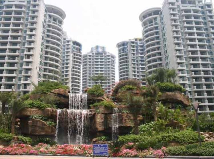 进入社区,眼前豁然开朗,一座2000平方米的人工湖上清波绿岛,石间有飞瀑流泉,奇花异草漫步其中,疲劳顿消;