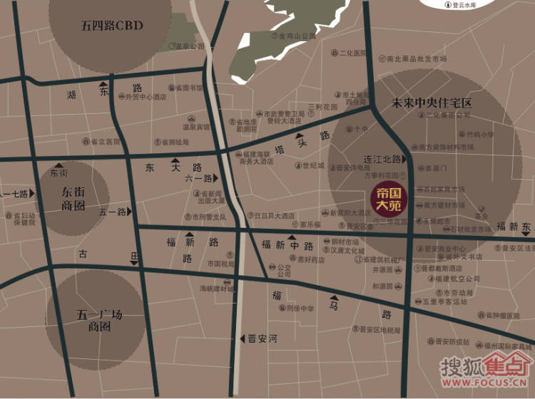 龙祥大酒店,晋都戴斯国际酒店,茶会永辉超市,家乐福,喜盈门建材家具广场,百姓家居广场,福州南方建材市场,晋安区委