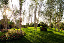 阳光理想城作为“中国年度较佳生态宜居经典住宅”,凝粹国宾圈层最为稀缺的生态资源,特聘蜚声国际的澳大利亚五贝国际设计公司担纲景观设计。在罕有的3.3万平米实景花园样板示范区中,160余种苗木组成了优质缤纷的唯美园林,其中不乏有从南台岛全冠移植的大直径荔枝树,难得一寻的野生银杏、假萍婆、尖叶杜英、高山榕、凤凰木等名贵树种,还有凤仙花、四季海棠、金脉爵床等名贵花卉点缀其中。如此多样的苗木种类不仅丰富了视觉效果,更营造恬静典雅的自然氛围,共同演绎一场5层立体垂直式的园林序曲。