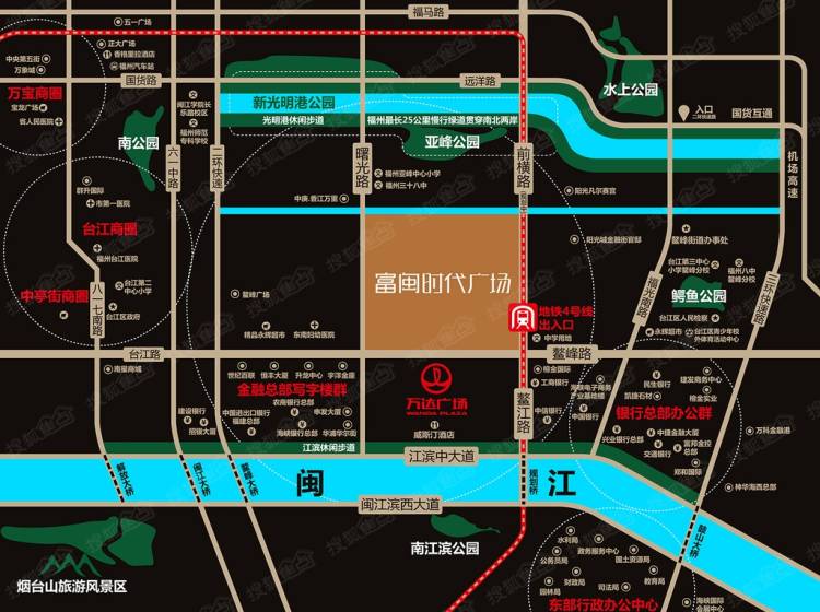 富闽时代广场位于台江区鳌峰路与曙光路交叉路口,台江万达正对面,原为福州花鸟市场地块。该项目地处金融街核心地段,连接金融街一期二期中轴线,坐享金融街一期繁华与成熟配套,而随着金融街二期建设发展,升值空间不言而喻。该项目为福州又一城市综合体,以智慧引领未来,致力打造福州较具前瞻性的智能化综合体。项目规划高端住宅、5A写字楼及时尚购物街区,一期推出53-123㎡高端住宅,共计32层,140平方米豪华酒店大堂,尊享尊贵;全明户型、通透设计,超高空间利用率;顶层私享花园,打造独有的私密空间。