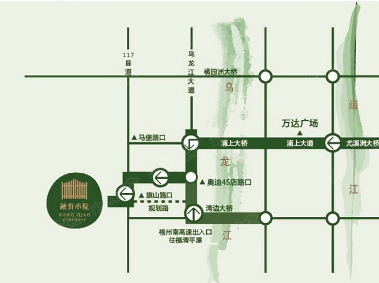 1、乘坐901公交至融侨旗山终点站; 2、乘坐902、171、82公交至旗山路 / 旗山路口; 3、融侨旗山特约巴士(融侨江南水都永辉超市——融侨旗山,7:00-19:00,每半小时一班)。三条主干道与市区相连。从尤溪洲大桥经过浦上大桥之后左转到达本案;金山大桥和橘园洲大桥往上街大学城方向左转到达本项目;东区和仓山区经福湾路、湾边大桥到达本项目。本案驱车5分钟就可以到达福银高速福州南互通出口,往福清、长乐、平潭以及全省各地非常方便快捷。市政府规划地铁三号线,从本项目旁边连接到福州的五四北,在市中心可以和地铁1号线、2号线换乘。